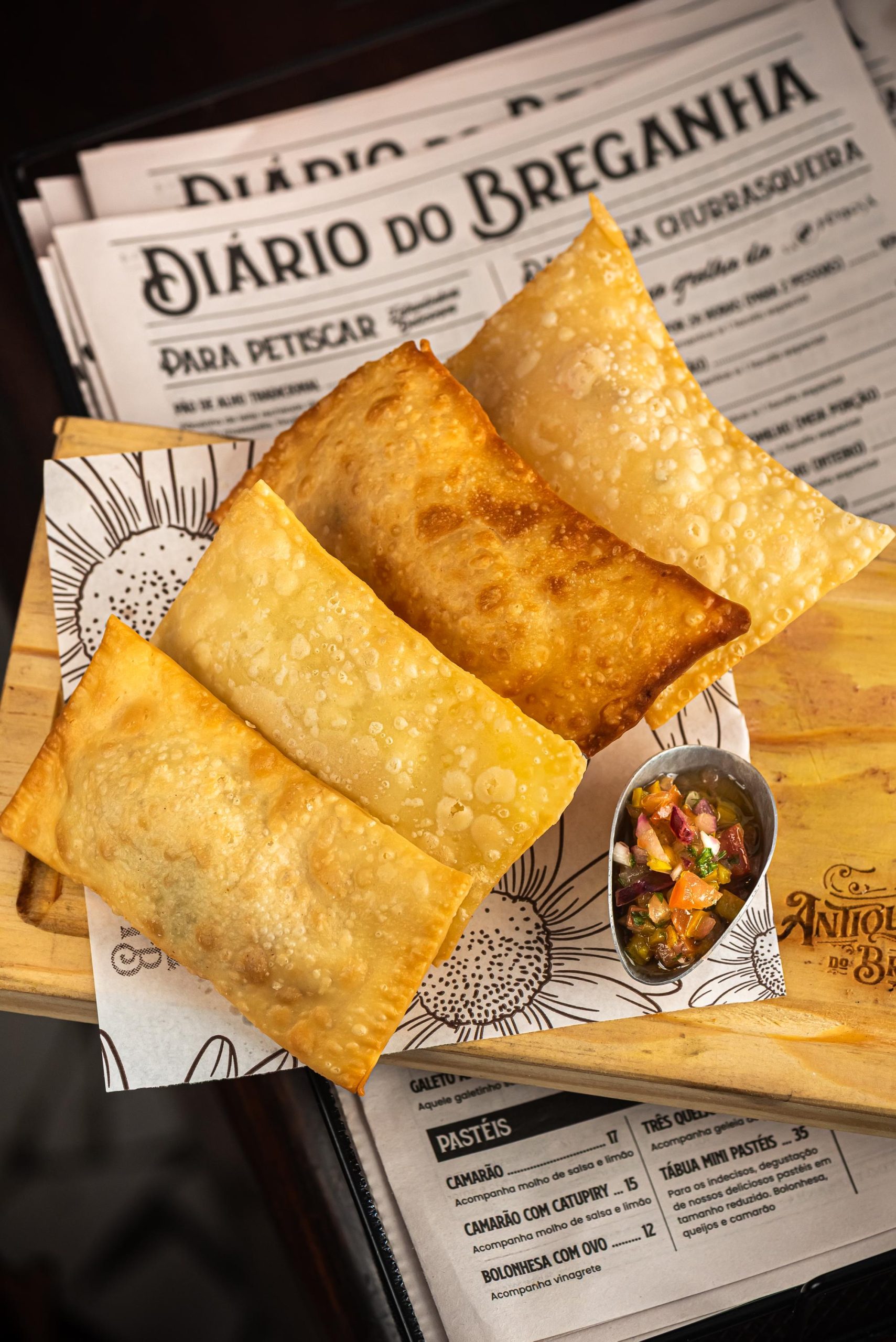 Além da tábua de degustação, o Antiquário do Breganha mantém em seu cardápio os pastéis individuais, famosos por serem maiores e muito recheados. Entre as opções estão o pastel de Camarão com ou sem catupiry, acompanhado de molho salsa e limão (R$ 17); o pastel de Bolonhesa com ovo, servido com vinagrete (R$ 12); e o pastel de Três Queijos, harmonizado com geleia de pimenta (R$ 12).