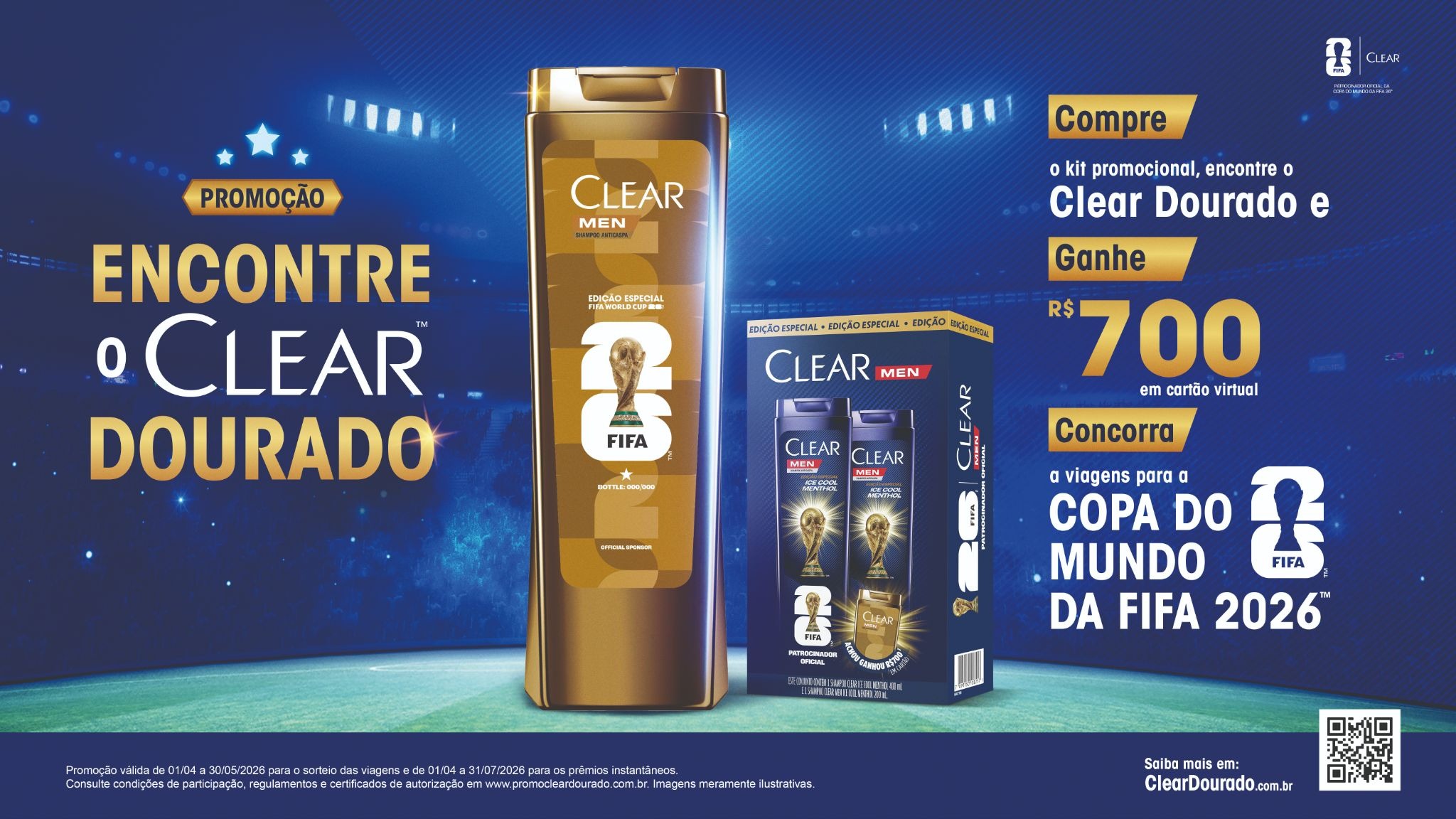 Clear Men, shampoo anticaspa líder no mercado brasileiro e patrocinador oficial da Copa do Mundo FIFA 2026™, lança neste mês de abril a promoção “Encontre o Clear Dourado”, que premiará consumidores com prêmios instantâneos e a chance de ir à Copa do Mundo e viver o maior torneio esportivo do mundo de perto a partir da compra de produtos em pontos de venda.