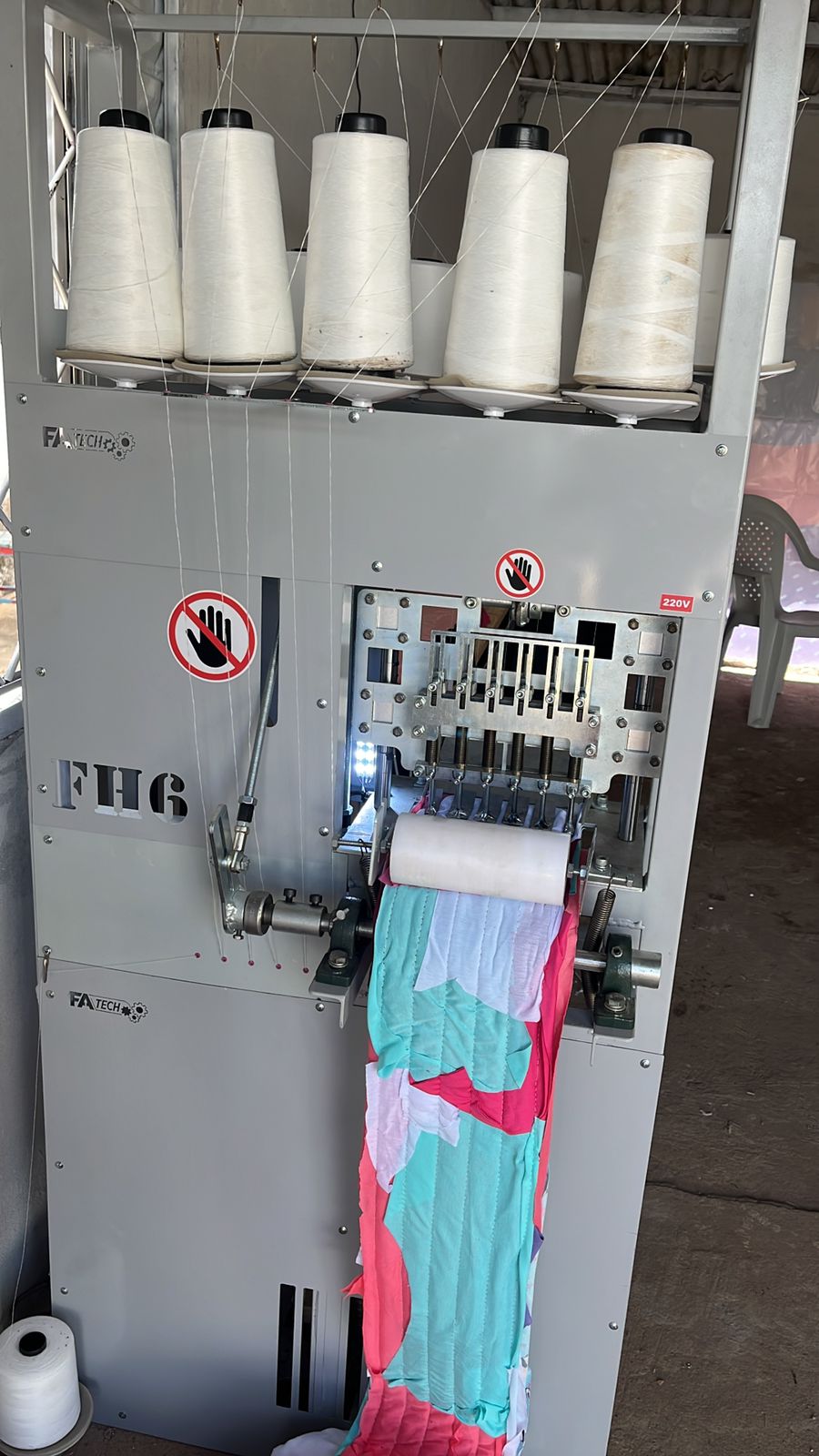 Com tecnologia nacional, a máquina utiliza linha reta 120 e motor de 400 watts. Ela opera com duas pessoas, e pode produzir de 300 a 700 kg de trapos costurados por dia, utilizando resíduos têxteis adquiridos a preços acessíveis.