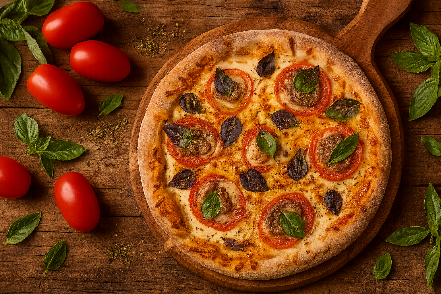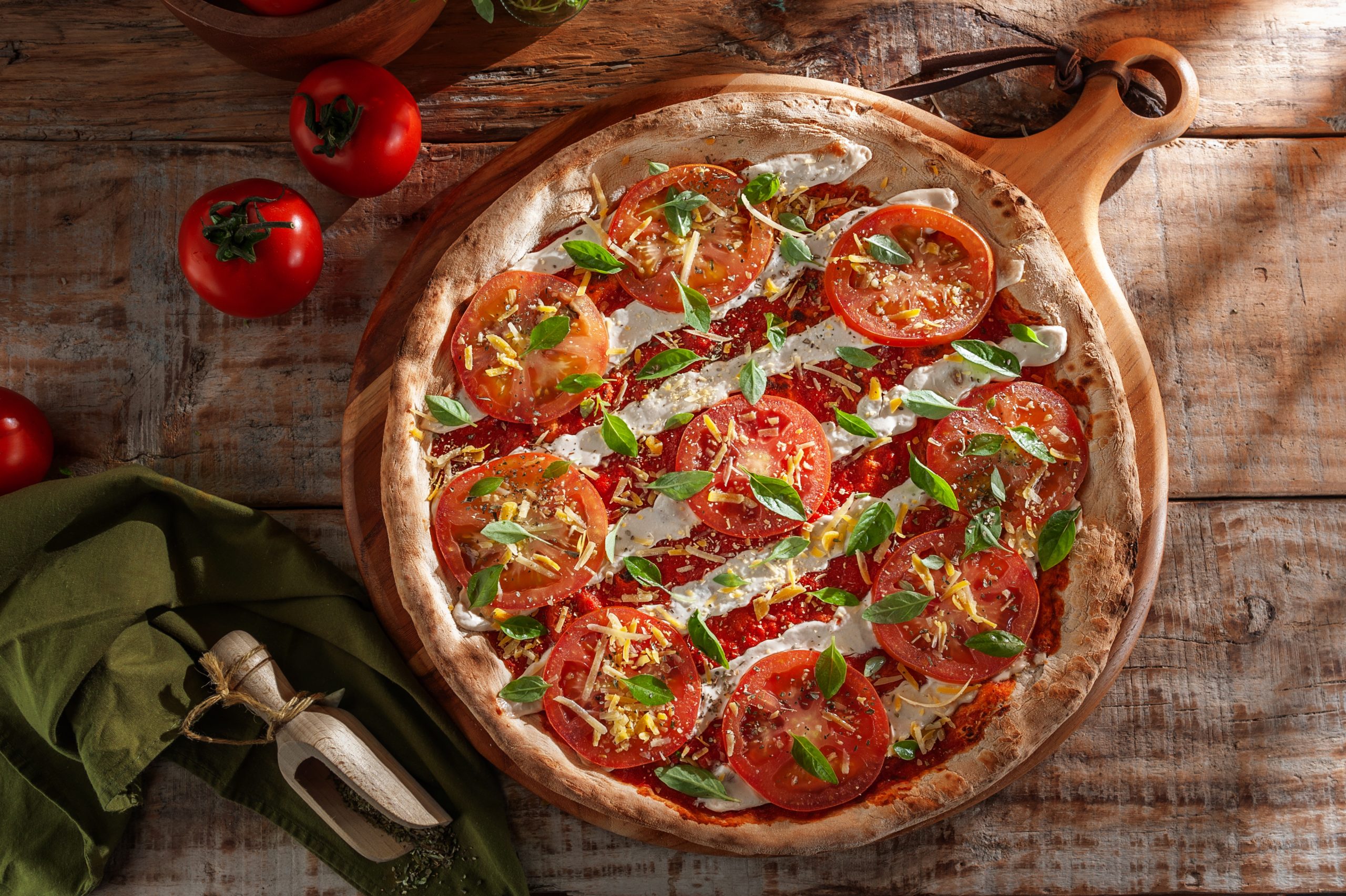A Italiana, que faz parte da linha de especialidades da casa, também brilha com sua combinação irresistível de mozzarella de búfala italiana, molho artesanal da casa, tomate cereja em fatias, parmesão e o frescor do manjericão e orégano.
