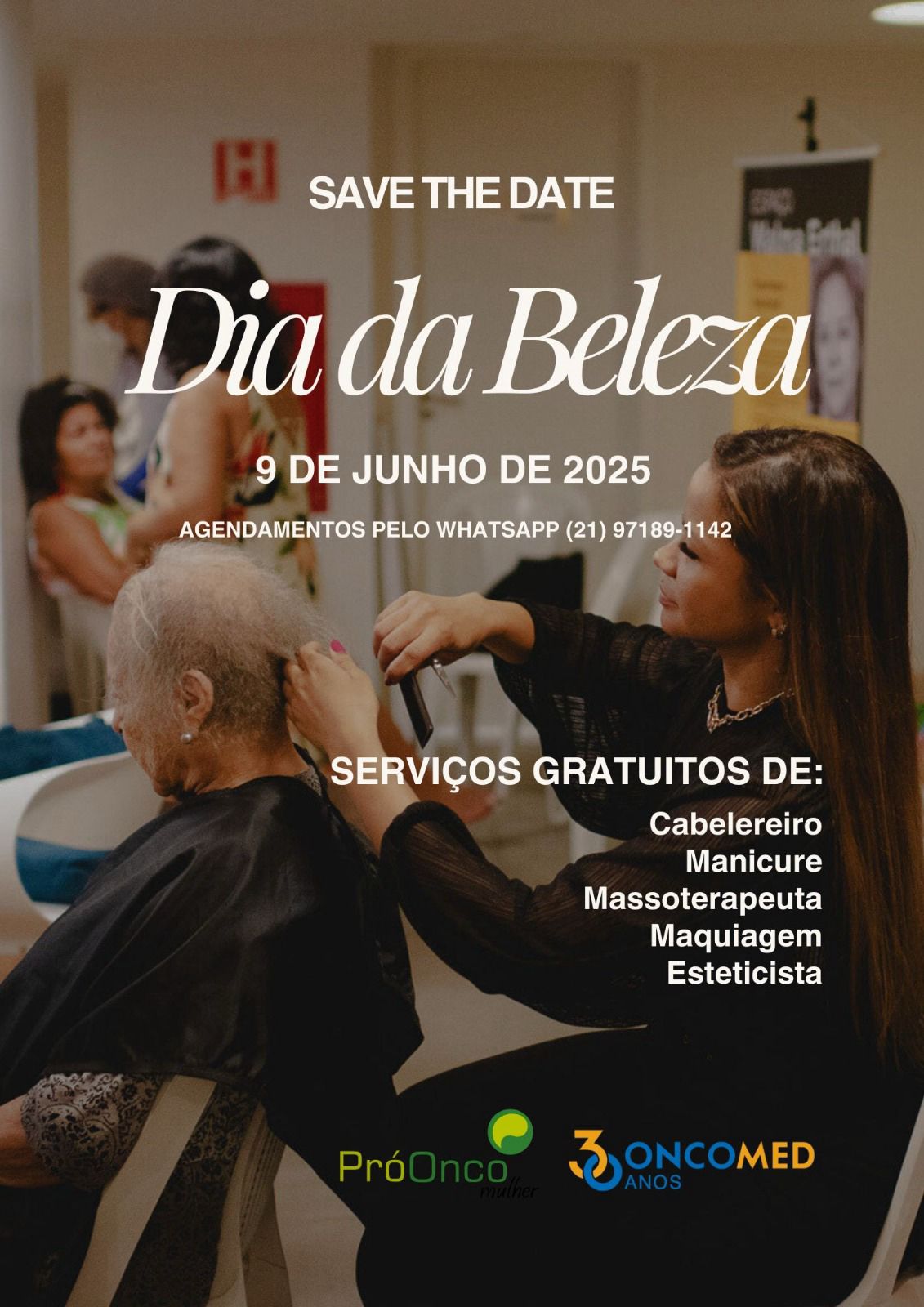 Pelo segundo ano consecutivo, o Dia dos Namorados será marcado por uma ação social especial para mulheres que passaram pelo câncer ou estão em tratamento da doença. É o Dia da Beleza, projeto promovido pela Oncomed e a clínica PróOnco Mulher para reforçar o bem-estar feminino. Com serviços estéticos gratuitos de manicure, cabeleireiro, maquiagem e massoterapia, o projeto acontece no próximo dia 9 de junho na unidade São Francisco da Oncomed, das 12h às 17h. As vagas são limitadas e as interessadas em participar devem fazer a inscrição enviando mensagem escrita para o WhatsApp (21) 97189-1142.