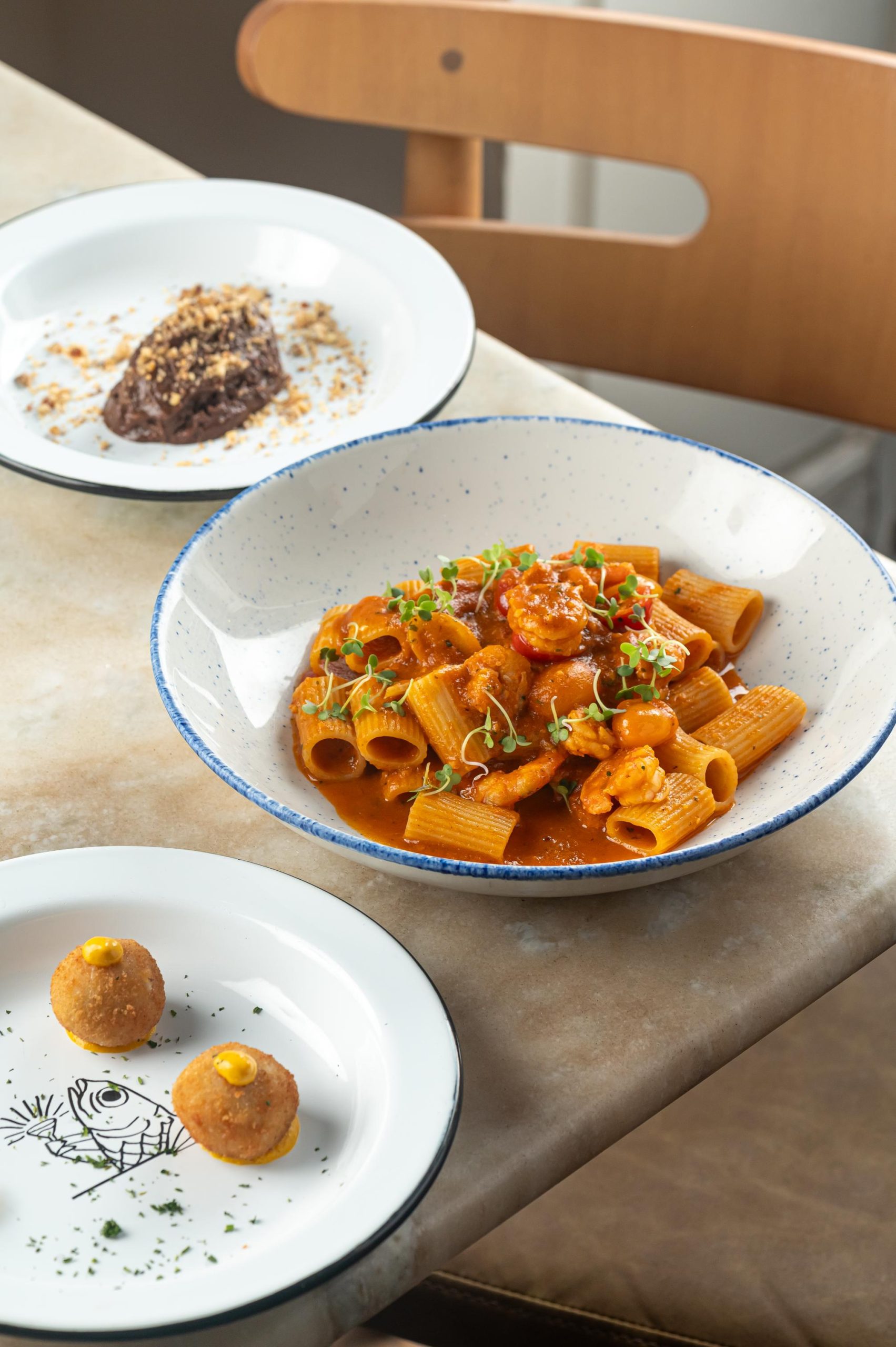 Pratos principais: Picadinho do Chef (arroz, ovo poché e farofa de banana); Peixe braseado com purê de abóbora; Rigatoni do Mar (mexilhão com casca e molho de champanhe). As entradas e sobremesas mantêm-se.