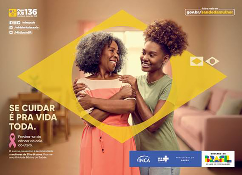Com presença em TV, rádio, internet e painéis digitais, a ação nacional destaca que o autocuidado, a prevenção e detecção precoce do câncer de mama e do câncer do colo do útero devem ser hábitos permanentes.