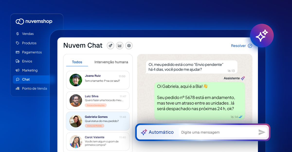 O Nuvem Chat está nativamente integrado à plataforma de e-commerce e ao WhatsApp Business. Os lojistas podem solicitar o acesso à ferramenta e utilizá-la diretamente do painel de administração da loja virtual. A solução oferece informações de estoque em tempo real, status de pedidos e recomendações personalizadas de produtos 24 horas por dia, de forma conectada ao catálogo e gestão de pedidos.
