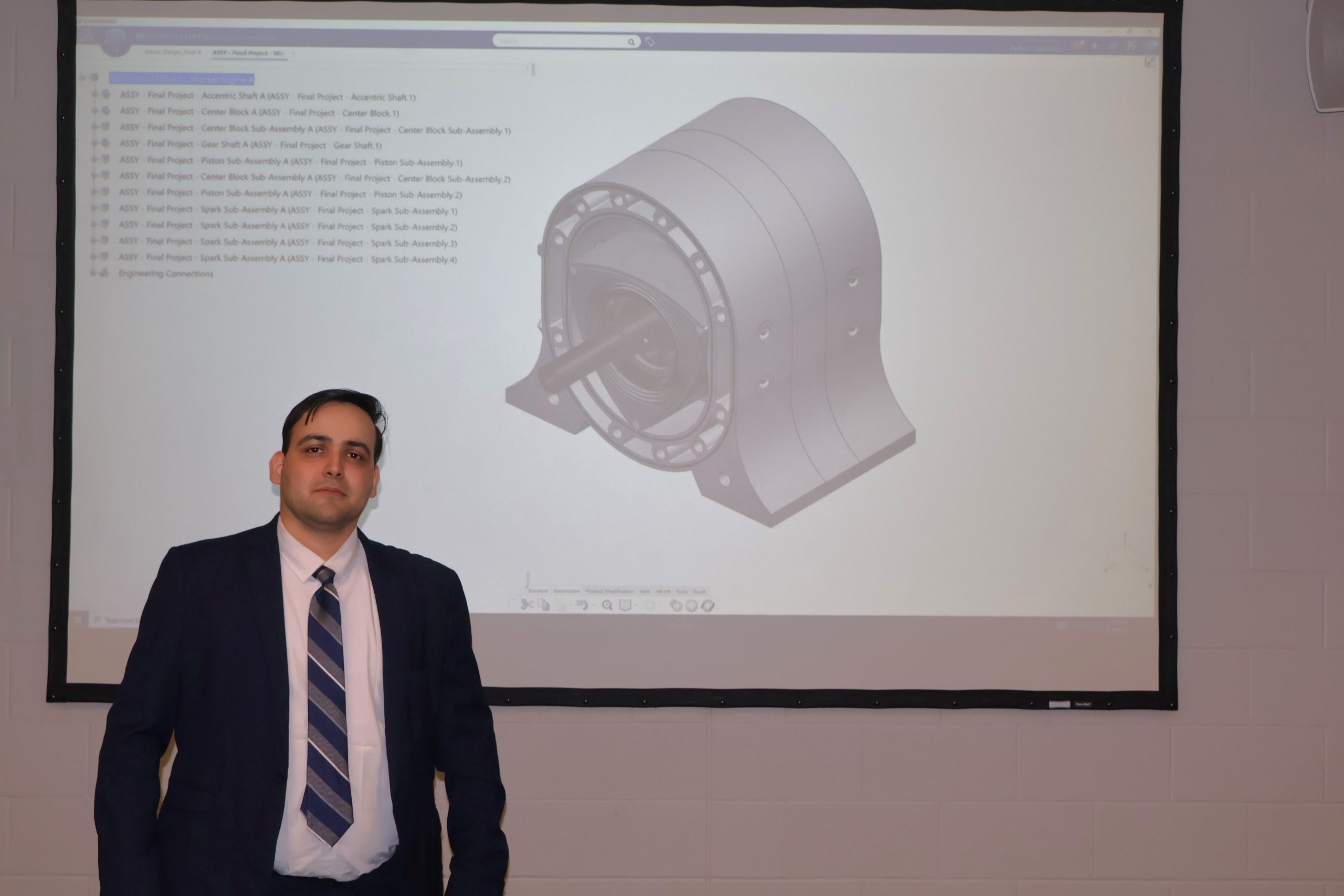 Pedro projetou individualmente dois motores completos, um V12 e um Wankel rotativo, utilizando o 3DEXPERIENCE, simulando o funcionamento interno com conexões cinemáticas e resolvendo interferências em mais de 70 componentes no total. Esses projetos demonstram seu domínio em modelagem 3D, montagem funcional e validação de sistemas mecânicos complexos.