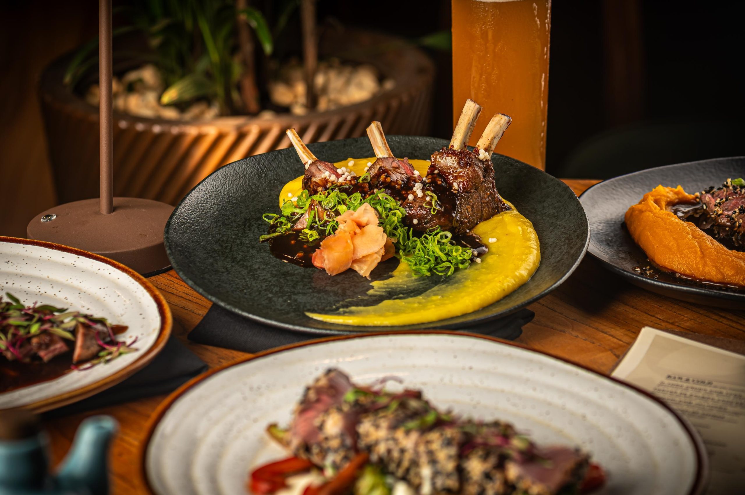 O restaurante aposta em receitas que exploram elementos característicos da culinária asiática, como missô, gergelim e molhos reduzidos, aplicados a cortes nobres de carne e peixe.