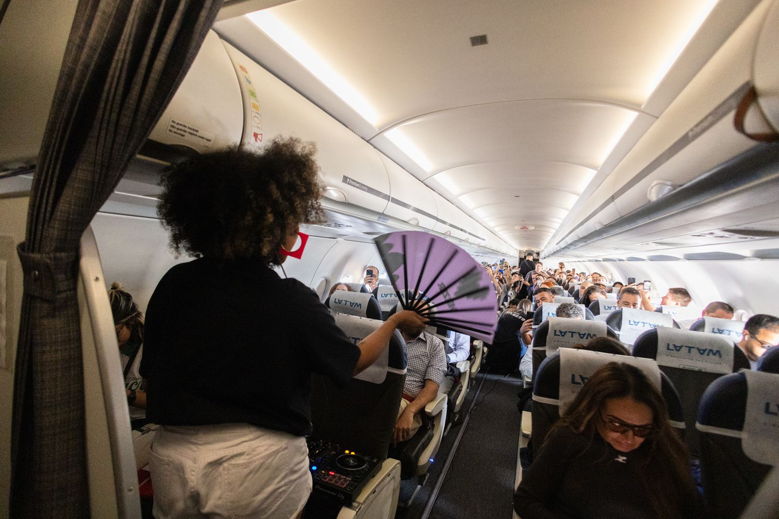 O voo LA 3920 (São Paulo/Congonhas–Rio de Janeiro/Santos Dumont) virou cenário de um espetáculo nas alturas, em homenagem à rainha do pop. A bordo do avião LATAM, passageiros viveram uma experiência sensorial com DJ ao vivo, curadoria musical assinada pela Deezer, brindes temáticos e sorteio de ingressos para a área exclusiva do Todo Mundo no Rio.